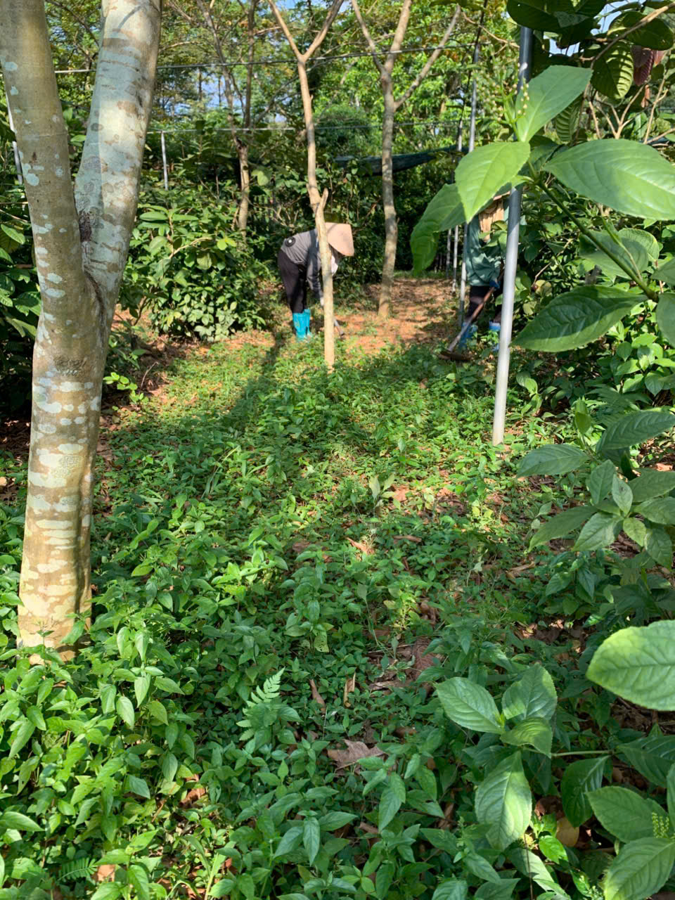 29-09-2024 12:09:00 | Làm cỏ | Tiến hành làm cỏ bằng tay cho một số khu vực của vườn trà. Dọn sạch cỏ dại, thực bì cho toàn bộ vườn, đặc biệt là vùng quanh gốc cây với đường kính 1m. | Hoàn thành | |