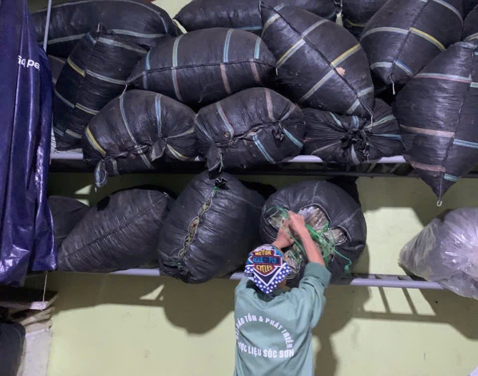 18-09-2025 12:09:00 | Nhà kho bảo quản | Nhập kho tổng khối lượng thu hoạch lá Trà hoa vàng sau các đợt thu hoạch là: 75 (Kg). Lá trà được đóng trong bao nilon trong suốt và đựng trong bao tải dứa rồi xếp lên giá riêng biệt trong kho chứa dược liệu. | Hoàn thành | |