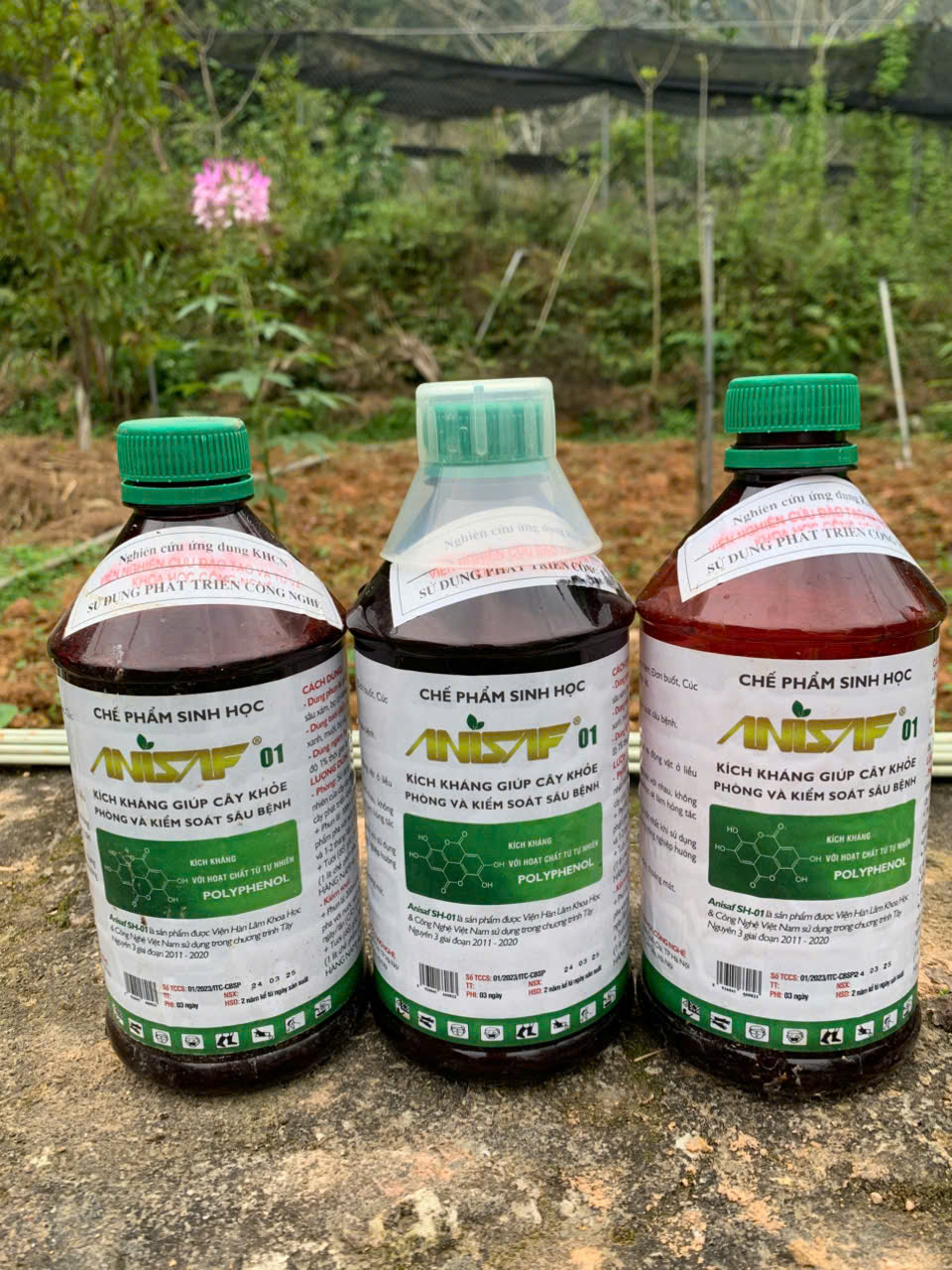 | 25-12-2024 12:12:00 | Bảo vệ thực vật | Tiến hành phun chế phẩm sinh học Anisaf 01 và 03 để phòng trừ các loại sâu hại, rệp sáp các bệnh về nấm và virus gây ra cho cây trà. Cách dùng: pha tỉ lệ 200ml mỗi loại chế phẩm /20 lít nước phun cho toàn bộ vườn. | Hoàn thành | |
