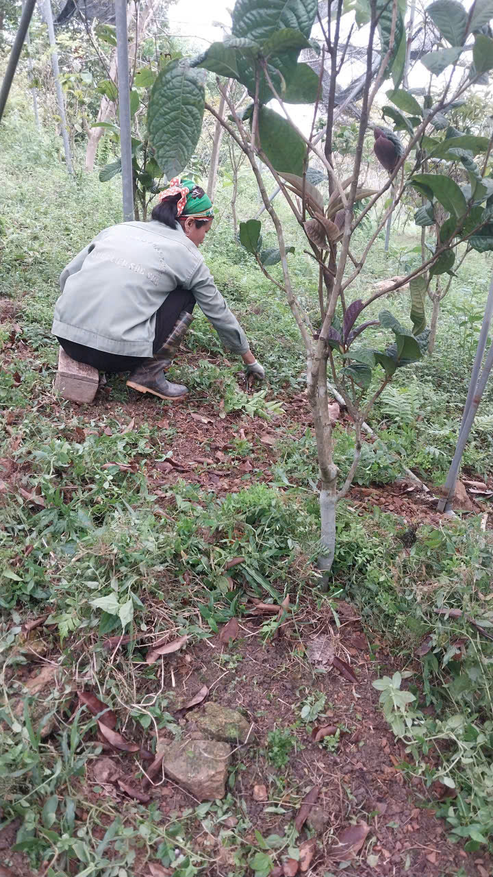 | 01-12-2024 12:12:00 | Làm cỏ | Tiến hành làm cỏ bằng tay. Dọn sạch cỏ dại, thực bì quanh gốc, đường kính 1m. | Hoàn thành | |