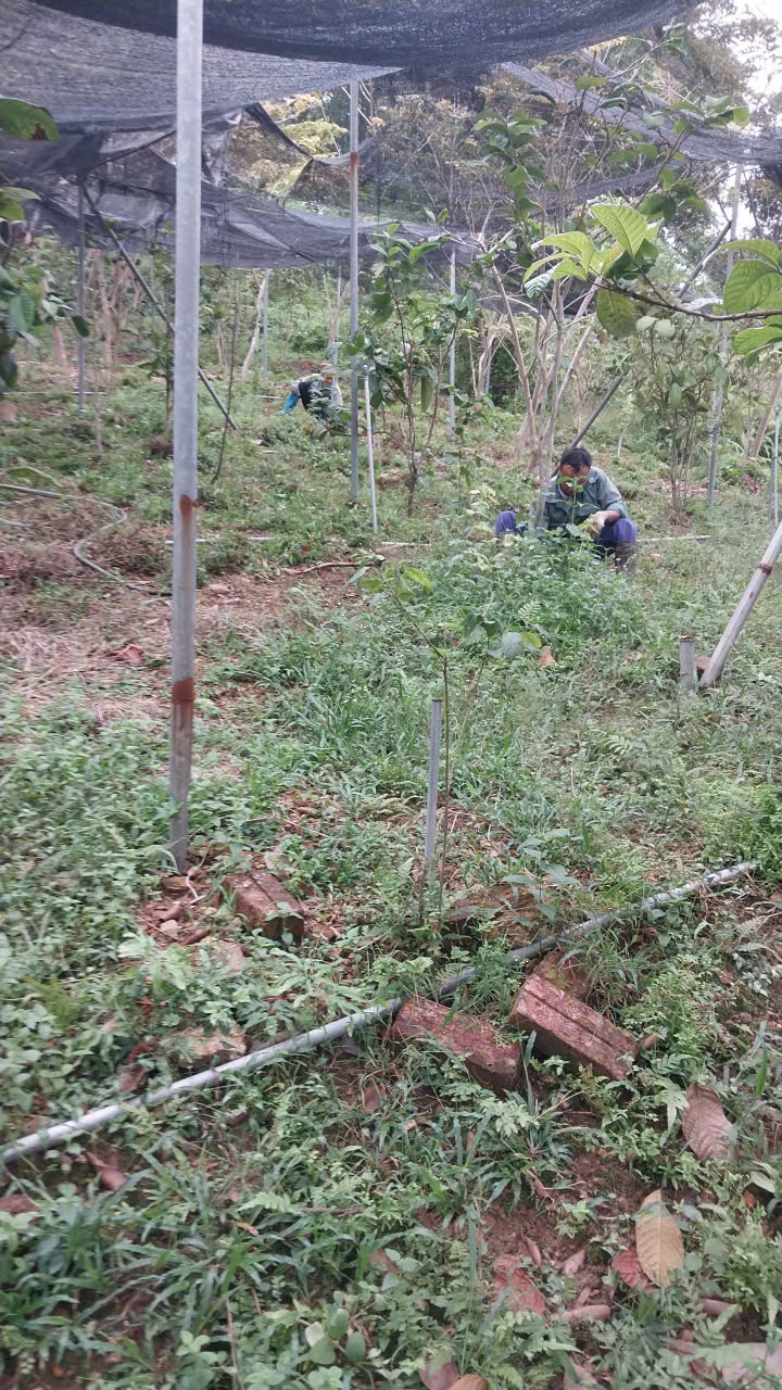 | 01-10-2024 12:10:00 | Làm cỏ | Tiếp tục làm cỏ bằng tay một số khu vực của vườn trà. Dọn sạch cỏ dại, thực bì quanh gốc, đường kính 1m để vườn trà được thông thoáng, hạn chế sâu bệnh hại. | Hoàn thành | |