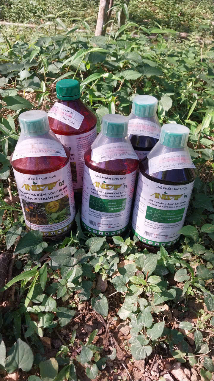 | 15-07-2024 12:07:00 | Bảo vệ thực vật | Tiến hành phun chế phẩm sinh học Anisaf 01, 02 và 03 để phòng trừ các loại sâu hại, các bệnh về nấm và virus gây ra cho cây. Cách dùng: pha tỉ lệ 200ml mỗi loại chế phẩm /20 lít nước phun cho toàn bộ vườn | Hoàn thành | |