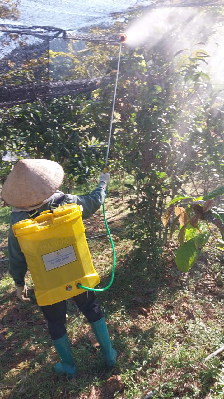 | 09-05-2024 12:05:00 | Bảo vệ thực vật | Tiến hành phun chế phẩm sinh học Anisaf 01, 02 và 03 để phòng trừ các loại sâu hại, các bệnh về nấm và virus gây ra cho cây. Cách dùng: pha tỉ lệ 200ml mỗi loại chế phẩm /20 lít nước phun cho toàn bộ vườn | Hoàn thành | |