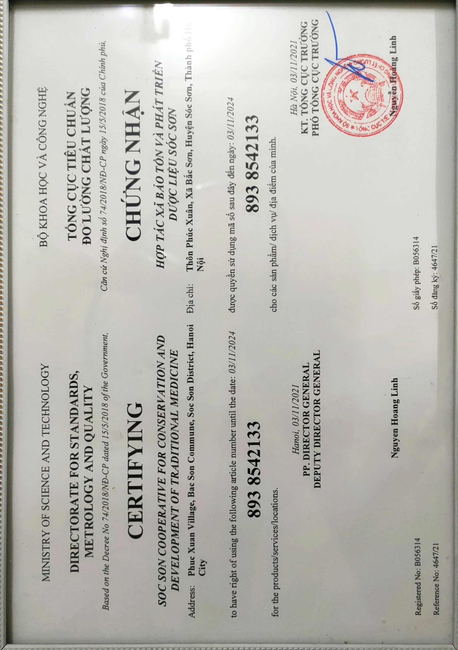 | 01-07-2025 12:07:00 | Giấy chứng nhận | Giấy chứng nhận mã số mã vạch. (Đang trong quá trình cấp lại giấy Chứng nhận mới). | Hoàn thành | |